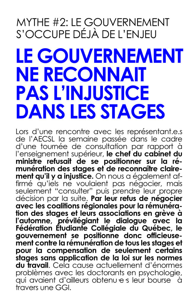 UN SALAIRE POUR LES STAGES ET LES ÉTUDES