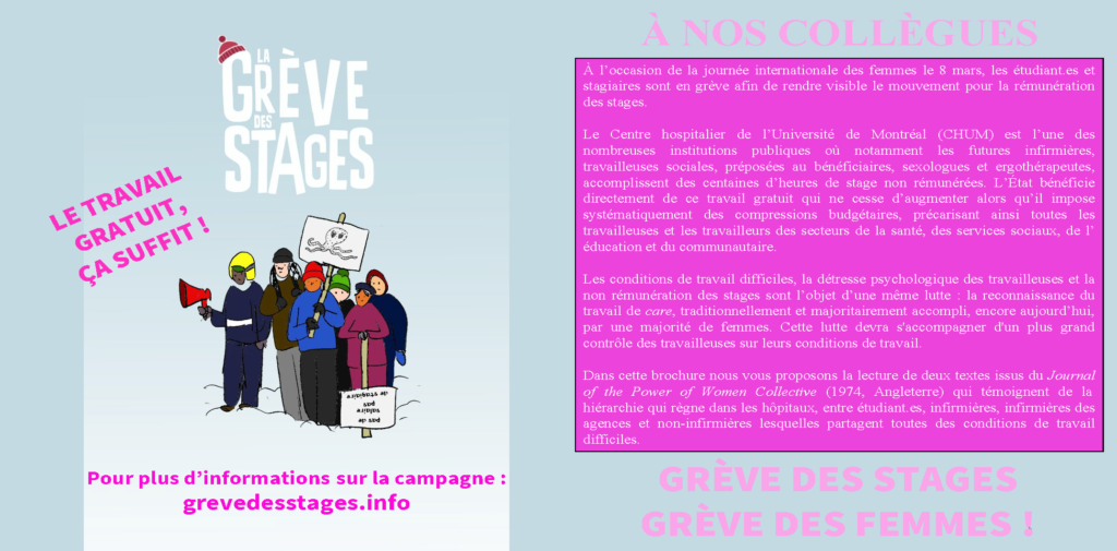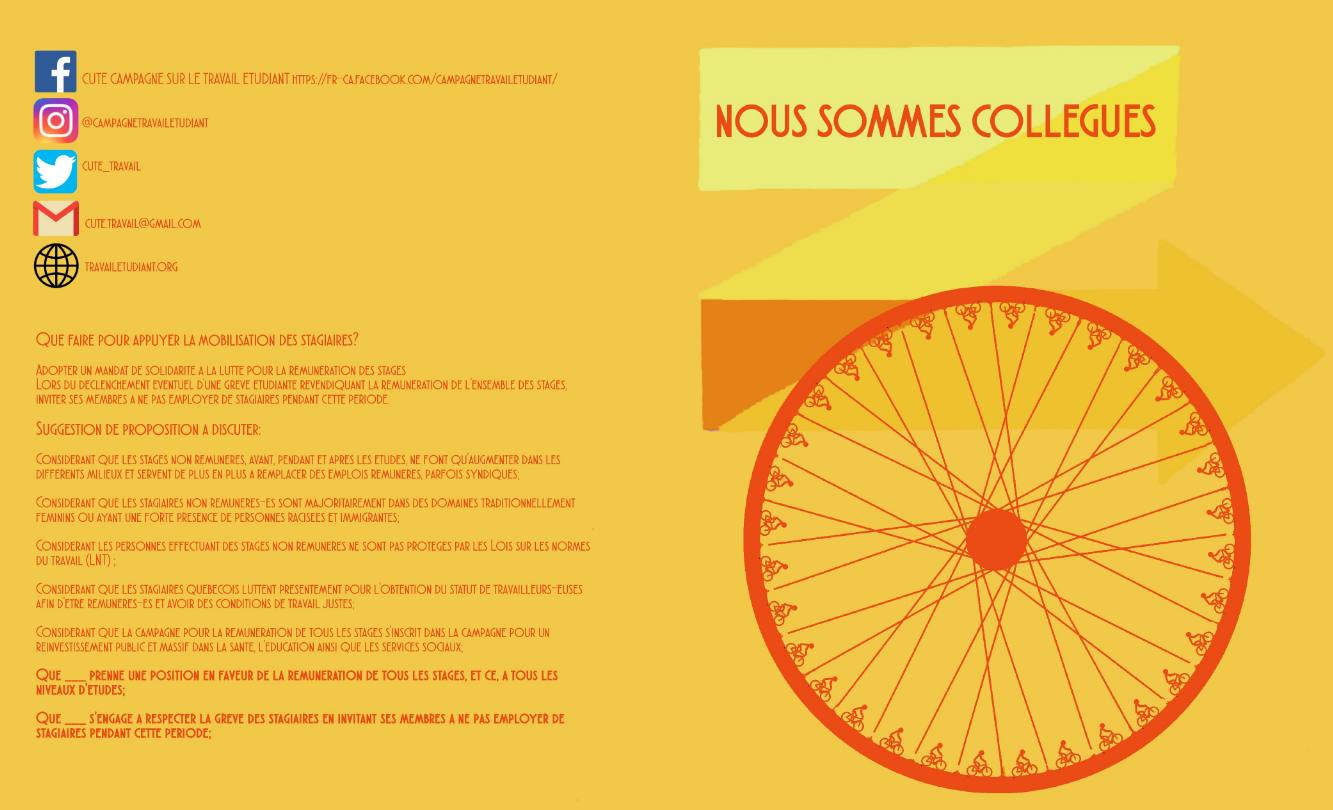 BROCHURE | Imprimer en 8½ x 11 en paysage recto/verso côté court. À distribuer massivement sur votre lieu de stage ou de travail.
